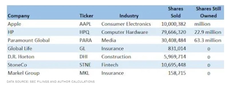 Ο Μπάφετ αποσύρθηκε εντελώς από μικρότερες θέσεις, όπως στην κατασκευαστική D.R. Horton, στη fintech Stoneco και στις ασφαλιστικές εταιρείες Global Life και Markel.