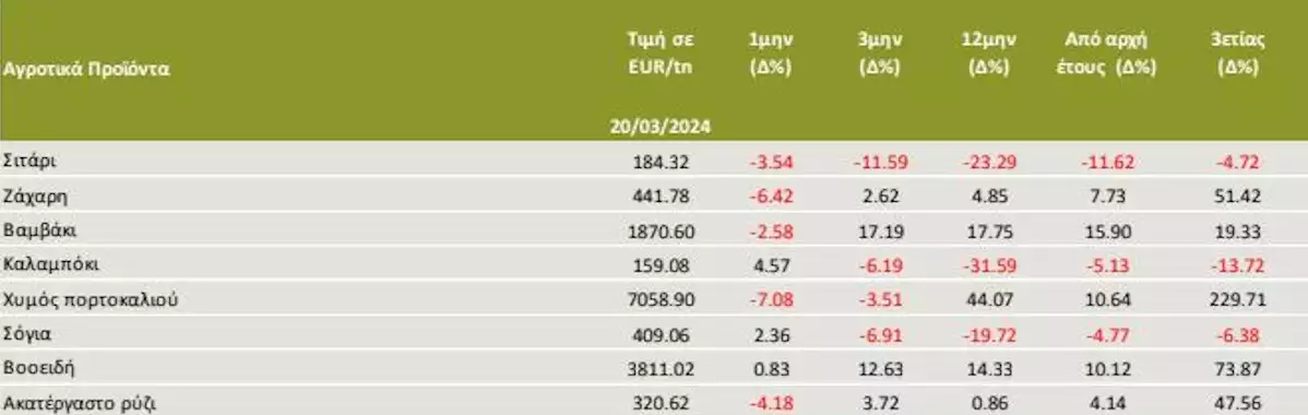 Σύμφωνα με το δελτίο τιμών αγροτικών προϊόντων της Τράπεζας Πειραιώς, οι ανησυχίες της αγοράς στο θέμα της προσφοράς αναμένεται να παραμείνουν, καθώς επανεμφανίστηκαν προβλήματα στις καλλιέργειες της Ν. Ευρώπης, όπως το «πρασίνισμα» του καρπού.
