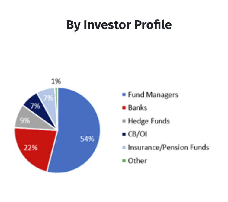 Από αυτούς μάλιστα, η πλειοψηφία ήταν νέοι και «ποιοτικοί» επενδυτές. Υπολογίζεται ότι συνολικά 70-80 μεγάλοι επενδυτικοί οίκοι, μεγάλα ασφαλιστικά ταμεία και ξένες τράπεζες μετείχαν στη χθεσινή έκδοση, εκ των οποίων οι μισοί είχαν μια δεκαετία να «αγοράσουν» Ελλάδα, καθώς τους το απαγόρευε και το καταστατικό τους ακόμα να επενδύουν σε τίτλους με αξιολόγηση «σκουπίδια» (junk). Σχεδόν διπλασιάστηκαν από πέρυσι, καθώς δεν ξεπερνούσαν τους 40 ή 50 το πολύ.