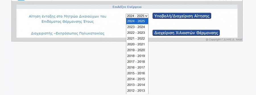 Nωρίτερα δεν ήταν ενήμερη η σελίδα σχετικά με την περίοδο, καθώς εμφανιζόταν μόνο οι προηγούμενες αιτήσεις με τελευταία αυτή για το διάστημα 2024-2025.