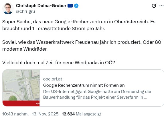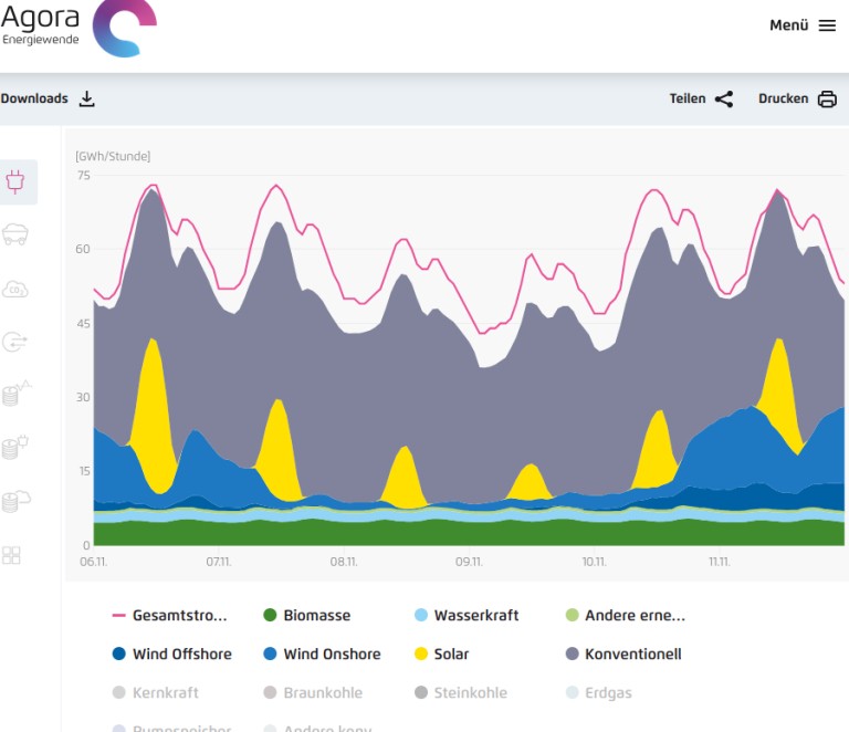 Ωστόσο, υπάρχουν αρκετά προβλήματα. Η Τεχνητή Νοημοσύνη και η τεχνολογική βιομηχανία απαιτούν πολλή ηλεκτρική ενέργεια. Κάποιοι ονειρεύονται ότι ένα τέτοιο κέντρο δεδομένων θα μπορούσε να τροφοδοτείται από 80 ανεμογεννήτριες. Ωστόσο, μια ματιά στα δεδομένα από τη Γερμανία στην Agora Energiewende αποκαλύπτει γρήγορα ότι αυτό είναι αδύνατο χωρίς την εισαγωγή ηλεκτρικής ενέργειας από γαλλικούς πυρηνικούς σταθμούς.