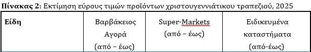 Αυτό δείχνουν τα στοιχεία της ΙΝ.ΕΜ.Υ.-ΕΣΕΕ, όπως καταγράφηκαν, με επιτόπια τιμοληψία και συνεντεύξεις με key-informers της αγοράς, οι τιμές τόσο από αλυσίδες Supermarkets όσο και από ειδικευμένα καταστήματα λιανικής (πχ ζαχαροπλαστεία/ κρεοπωλεία κτλ), καθώς και από τη Βαρβάκειο αγορά.
