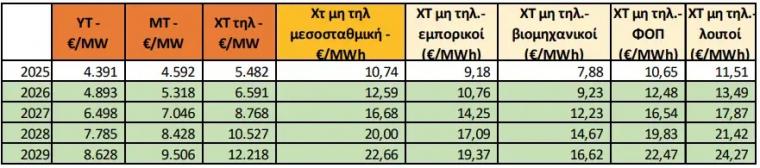 Στη σχετική εισήγηση προς τη ρυθμιστική αρχή ενέργειας, ο ΑΔΜΗΕ κάνει λόγο για επιβεβλημένες αυξήσεις με βάση τις συνθήκες σήμερα και την άνοδο στο κόστος του εξοπλισμού. Έτσι, από το 2025 ως το 2029 οι χρεώσεις συστήματος προβλέπεται να υπερδιπλασιαστούν για την κάθε κατηγορία κατανάλωσης.