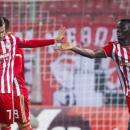 Οι αθλητές Απόστολος Χρήστου και Εμμανουήλ Καραλής μπήκαν στον αγωνιστικό χώρο του γηπέδου, χειροκροτήθηκαν από τον κόσμο της ομάδας και βραβεύτηκαν από τον Ολυμπιακοό, για τα μετάλλια που κατέκτησαν στους Ολυμπιακούς Αγώνες 2024 στο Παρίσι
