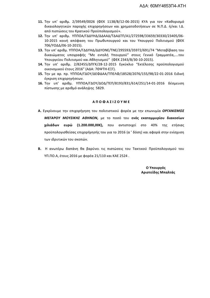 ΤΗΝ ΩΡΑ ΠΟΥ ΟΙ ΑΓΡΟΤΕΣ ΕΙΝΑΙ ΣΤΟ ΔΡΟΜΟ ΚΑΙ ΤΟΥΣ ΚΑΤΑΣΤΡΕΦΟΥΝ ΤΙΣ ΖΩΕΣ ΤΟΥΣ ΤΗΝ ΙΔΙΑ ΩΡΑ Η ΚΥΒΕΡΝΗΣΗ ΤΗΣ ΠΡΩΤΗΣ ΦΟΡΑΣ ΑΡΙΣΤΕΡΑΣ ΚΑΙ ΤΩΝ ΨΕΥΤΟΠΑΤΡΙΩΤΩΝ ΔΙΝΟΥΝ ΕΠΙΧΟΡΗΓΗΣΗ ΣΤΟ ΜΕΓΑΡΟ ΜΟΥΣΙΚΗΣ ΚΑΙ ΔΙΑΠΛΟΚΗΣ ΤΟΥ ΚΥΡΙΟΥ ΨΥΧΑΡΗ 1.200.000 €.