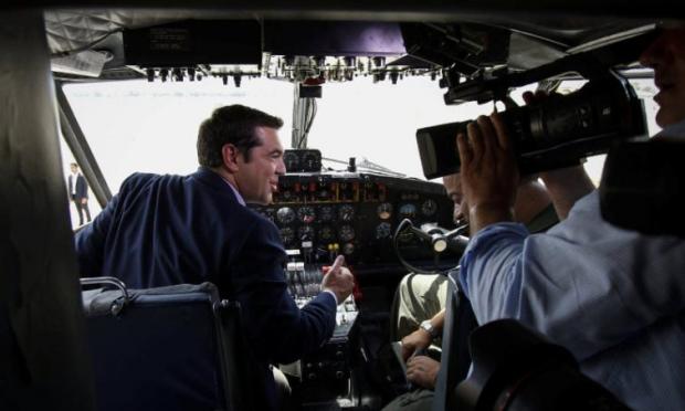 Στο πιλοτήριο πυροσβεστικού αεροσκάφους ξεναγήθηκε ο πρωθυπουργός Αλέξης Τσίπρας και όπως φαίνεται το απήλαυσε.