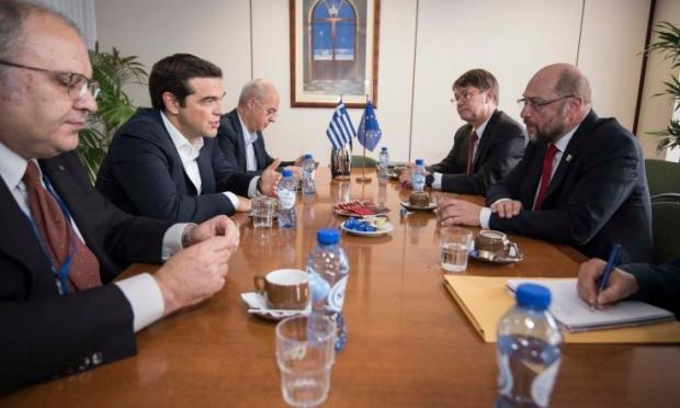 Η ανάγκη τήρησης των συμφωνιών για τη βιωσιμότητα του ελληνικού χρέους ήταν το κεντρικό μήνυμα της συνάντησης του πρωθυπουργού, Αλέξη Τσίπρα, με τον πρόεδρο του Ευρωπαϊκού Κοινοβουλίου, Μάρτιν Σουλτς, λίγο πριν την έναρξη των εργασιών της συνόδου κορυφής της ΕΕ, σήμερα στις Βρυξέλλες, σύμφωνα με κυβερνητικές πηγές.