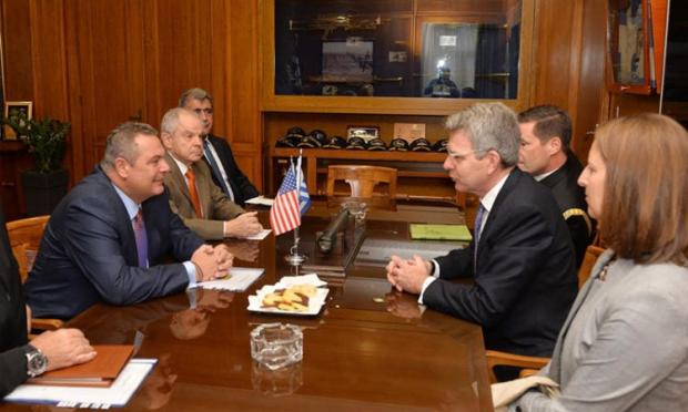 Την πρώτη τους επίσημη συνάντηση είχαν ο υπουργός Εθνικής Άμυνας Πάνος Καμμένος και ο νέος πρέσβης των ΗΠΑ στην Αθήνα Τζεφ Πάιατ. Οι δύο άνδρες συναντήθηκαν στο γραφείο του κ. Καμμένου στο υπουργείο Εθνικής Άμυνας.