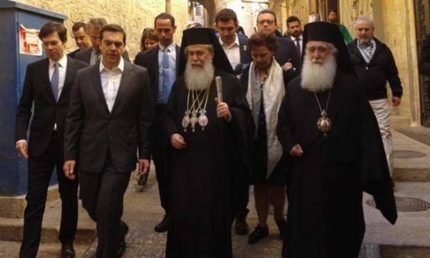 Ο πρωθυπουργός έφτασε στην είσοδο της Παλιάς Πόλης και από εκεί πήγε με τα πόδια ως το Πατριάρχειο, όπου τον υποδέχθηκε ο Πατριάρχης και η κυρία Μοροπούλου και όλοι μαζί, με πομπή, όπως προβλέπει το σχετικό τελετουργικό, κατευθύνθηκαν στον Πανάγιο Τάφο. Εκεί υπήρχαν και αρκετοί προσκυνητές και τουρίστες από διάφορες χώρες, οι οποίοι έσπευσαν να παρακολουθήσουν την επίσκεψη και να φωτογραφίσουν τον Έλληνα πρωθυπουργό.
