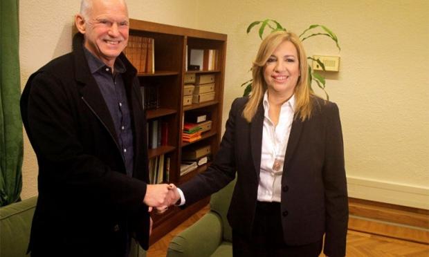 Συναντήθηκαν και τα βρήκαν η πρόεδρος του ΠAΣΟΚ και επικεφαλής της Δημοκρατικής Συμπαράταξης με τον πρόεδρο του ΚΙΔΗΣΟ. Η συνάντηση πραγματοποιήθηκε στο γραφείο της κυρίας Γεννηματά στη Βουλή.