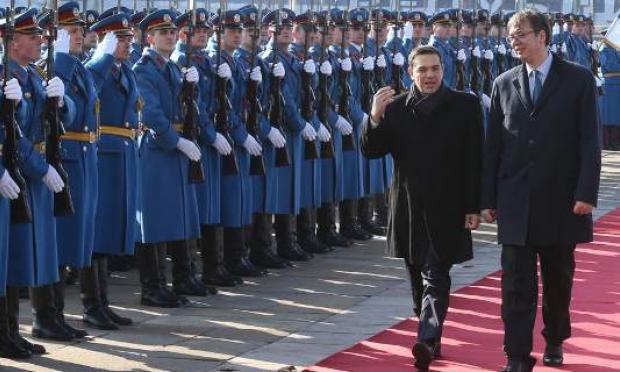 Σε εξέλιξη είναι η κατ' ιδίαν συνάντηση του πρωθυπουργού Αλέξη Τσίπρα, ο οποίος πραγματοποιεί επίσκεψη στο Βελιγράδι, με τον Σέρβο ομόλογό του Αλ. Βούτσιτς.