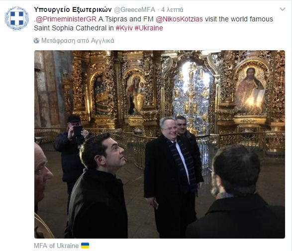 Τον καθρεδικό ναό της Αγίας Σοφίας στο Κίεβο επισκέφθηκε το πρωί της Πέμπτης ο Αλέξης Τσίπρας, που πραγματοποιεί επίσημη επίσκεψη στην Ουκρανία.