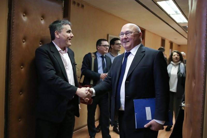 Η υποδοχή που επεφύλαξε στο ΥΠΟΙΚ ο Ευκλείδης Τσακαλώτος στον Γάλλο ομόλογό του Μισέλ Σαπέν ήταν θερμή.