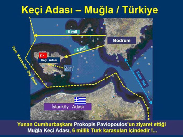 Την ίδια ώρα όπως φαίνεται δεν έχουν τέλος οι προκλήσεις από τουρκικής πλευράς, είτε από επίσημα χείλη, είτε από τον Τύπο της γειτονικής χώρας. Σειρά σήμερα πήρε η αντιπολιτευόμενη εφημερίδα Sözcü, η οποία κυκλοφορεί με πρωτοσέλιδο άρθρο για την επίσκεψη Παυλόπουλου στην Κάλυμνο και την Ψέριμο. Σε αυτό αναφέρονται στην Ψέριμο ως τουρκικό νησί και μάλιστα έχουν και χάρτη που δείχνουν την απόστασή της από την Αλικαρνασσό (Μπόντρουμ) και τη δείχνουν ως τουρκικό έδαφος που παρανόμως έχει πάνω ελληνική σημαία!
