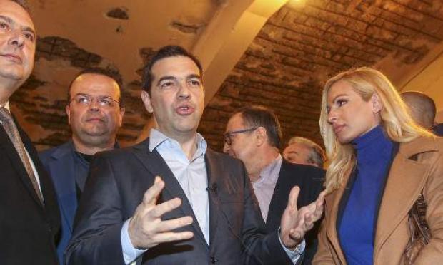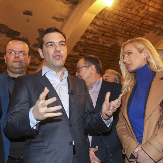 Ο Αλέξης Τσίπρας με την παρουσιάστρια της εκπομπής «Αρετή και Τόλμη», Βίκυ Παπαλουκά την περασμένη εβδομάδα κατά την επίσκεψή του στη Θεσσαλονίκη.