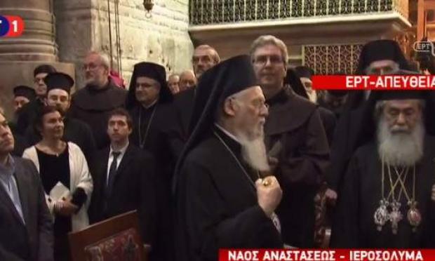Ο Οικουμενικός Πατριάρχης Βαρθολομαίος, στην ομιλία κατά την παράδοση του Ιερού Κουβουκλίου στον Πανάγιο Τάφο, μεταξύ άλλων, ευχήθηκε στον Πρωθυπουργό Αλέξη Τσίπρα, με αφορμή την πρόσφατη ονομαστική του εορτή, ενίσχυση και καρτέρηση, ώστε να οδηγήσει τον ελληνικό λαό σε καλούς λιμένες, σε λιμένες ευημερίας.