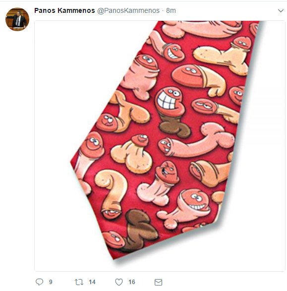 Σάλος έχει ξεσπάσει στα social media από την ανάρτηση στον επίσημο λογαριασμό του Πάνου Καμμένου στο twitter, η οποία δείχνει μία γραβάτα που απεικονίζει ανδρικά γεννητικά όργανα.