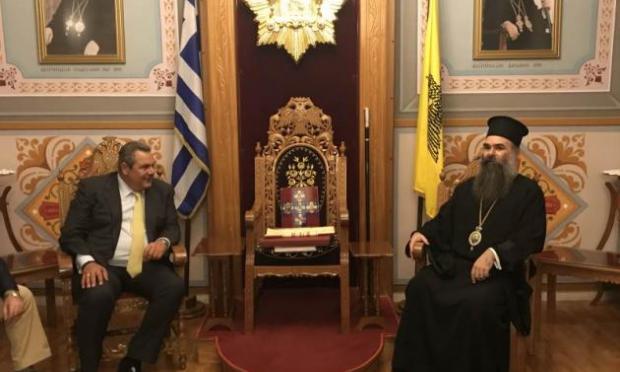 Ο κ. Καμμένος κατά την διάρκεια των εγκαινίων παρέδωσε στον Μητροπολίτη Ελασσόνας σεβασμιότατο κ. Χαρίτωνα ένα δώρο με τα σύμβολα των Αγίων προστατών των Ενόπλων δυνάμεων, ενώ μετά το τέλος της τελετής οι δύο άνδρες συναντήθηκαν στην έδρα της Μητρόπολης και συζήτησαν, μεταξύ άλλων, για την προσπάθεια που θα πρέπει να καταβάλει η χώρα μας για την προώθηση του θρησκευτικού τουρισμού.