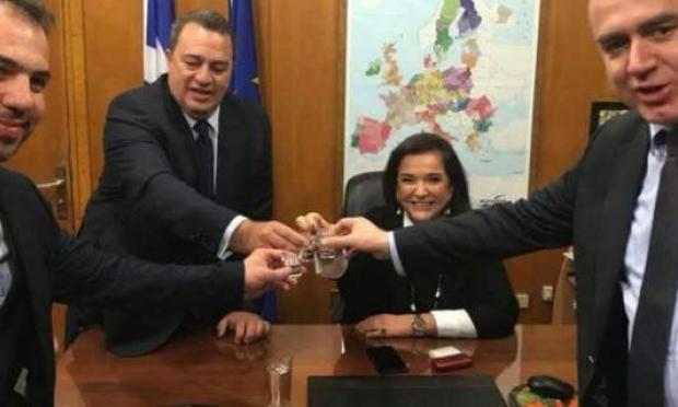 Ευχόμενος καλή χρονιά στην κ. Μπακογιάννη ο κ. Τσαλικίδης, της προσέφερε τσίπουρο Μαρώνειας και της δώρισε αναμνηστικό λεύκωμα με τις φυσικές ομορφιές της Ροδόπης, ενώ με μια αναμνηστική πλακέτα της εξέφρασε την επιθυμία να υπάρξει σύντομα εκ νέου συνάντησή τους.