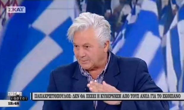 «Εγώ ανήκω σε αυτούς τους πολιτικούς που κρατάω μια συγκεκριμένη στάση. Οι ειδικοί γι’ αυτά έχουν όνομα: Πρόεδρος της Δημοκρατίας, Πρωθυπουργός, Υπουργός Εξωτερικών. Όσο λιγότερο μιλάμε για αυτά τόσο καλύτερα. Ο κ. Καμμένος είναι αρχηγός κόμματος και μπορεί να μιλάει. Ο Πάνος Καμμένος στην ιδρυτική διακήρυξη του κόμματος έχει συμπεριλάβει τη διάταξη ότι δεν δέχεται τον όρο ''Μακεδονία'' στην ονομασία των Σκοπίων. Έχει δηλώσει σε όλους τους τόνους ότι σέβεται τον Νίκο Κοτζιά, στον Πρωθυπουργό και τον Πρόεδρο της Δημοκρατίας. Επίσης, σας διαβεβαιώνω ότι περίπτωση δεδηλωμένης δεν υπάρχει και το έχει πει σε όλους τους τόνους ο πρόεδρος των ΑΝΕΛ», δήλωσε ο κ. Παπαχριστόπουλος στον ΣΚΑΪ.