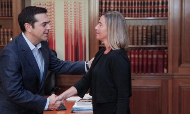 Με την Ύπατη εκπροσώπο της Ε.Ε. για θέματα Εξωτερικής Πολιτικής, Φεντερίκα Μογκερίνι συναντήθηκε στις Βρυξέλλες ο Αλέξης Τσίπρας. Κατά τη συνάντηση αυτή, συζητήθηκαν οι προκλήσεις της Τουρκίας στο Αιγαίο, οι εξελίξεις στην κυπριακή ΑΟΖ και οι ευρωτουρκικές σχέσεις. Επίσης, συζητήθηκε η περιοδεία που θα πραγματοποιήσουν ο πρόεδρος της Κομισιόν, Ζαν Κλοντ Γιούνκερ και η κα. Μογκερίνι στα Δυτικά Βαλκάνια, τις επόμενες ημέρες.