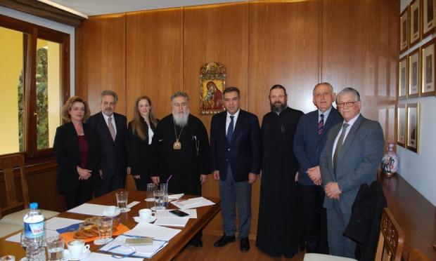 Στην συνάντηση συμμετείχαν ο Πρόεδρος του Συνοδικού Γραφείου Προσκυνηματικών Περιηγήσεων Σεβασμιώτατος Μητροπολίτης Δωδώνης κ. Χρυσόστομος, ο Γραμματέας, Πανοσιολογιώτατος Αρχιμανδρίτης π. Σπυρίδων Κατραμάδος, και οι κ. Γεώργιος Κούρτης, και κ. Χρήστος Πετρέας. Εκ μέρους του Τομέα Τουρισμού της Νέας Δημοκρατίας συμμετείχαν οι κ. Μανος Κόνσολας, Τομεάρχης Τουρισμού Νέας Δημοκρατίας, Βουλευτής Ν. Δωδεκανήσου, κ. Γιώργος Καραχάλιος, Επικεφαλής της Επιτροπής Θρησκευτικού Τουρισμού, κ. Πολυξένη Μοίρα, Μέλος της Επιτροπής Θρησκευτικού Τουρισμού, Καθηγήτρια του ΑΕΙ Πειραιά – Πρόεδρος Τομέα Τουρισμού, και η κ. Άννα Σαμαρά, Μέλος της Επιτροπής Διεθνών Σχέσεων και Τουριστικής Προώθησης. Στην κοινή συνάντηση έγινε σύντομη παρουσίαση του έργου που επιτελεί το Συνοδικό Γραφείο της Εκκλησίας της Ελλάδος και αντηλλάγησαν απόψεις και εξετάσθηκαν οι δυνατότητες κοινής συνεργασίας.
