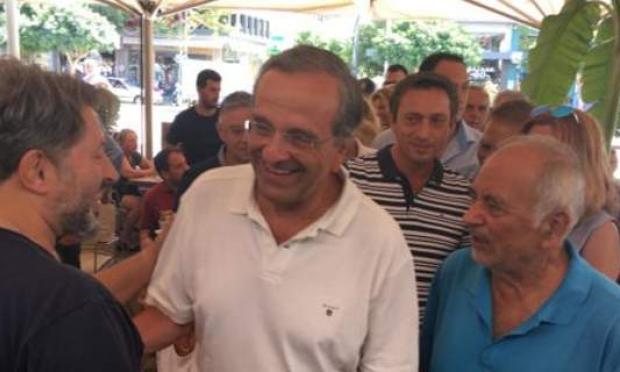 Ο Αντώνης Σαματάς συνομίλησε με πολύ κόσμο στην ιδιαίτερη πατρίδα του όπου έγινε δεκτός με ενθουσιασμό.