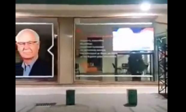 Σε μια από τις οθόνες που είχε τοποθετηθεί στην πρόσοψη του κέντρου αντί για κάποιο προεκλογικό σποτάκι, μεταδόθηκαν εικόνες πορνό.
