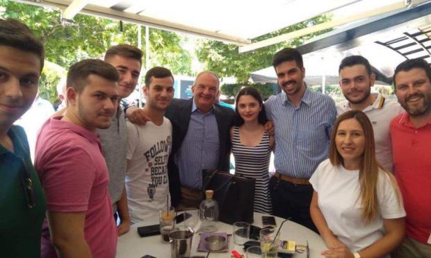 Η στιγμή που φάνηκε να απολαμβάνει ιδιαίτερα ήταν ο χαλαρός καφές, στο κέντρο της πόλης, με μέλη και στελέχη της ΟΝΝΕΔ Ροδόπης, όπου τον υποδέχτηκε ο πρόεδρος της «γαλάζιας» Οργάνωσης Κωνσταντίνος Τσαρδακλής. Αξίζει να σημειωθεί ότι ο πρώην πρωθυπουργός διαχρονικά έχει μία ιδιαίτερη αδυναμία στη νεολαία του κόμματος, τη ΔΑΠ – ΝΔΦΚ και την ΟΝΝΕΔ, απ’ όπου ξεκίνησε και ο ίδιος.