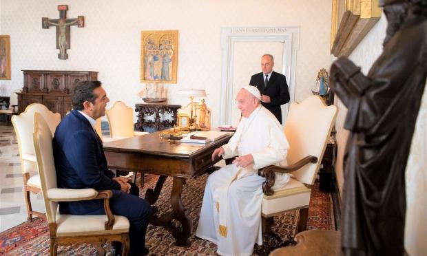 Οι δύο άνδρες συζήτησαν για το μήνυμα του Πάπα για την κοινωνική δικαιοσύνη και την προστασία των πιο ευάλωτων απέναντι σε πολιτικές λιτότητας, καθώς επίσης και για τη στάση του υπέρ της ειρήνης και της συνεργασίας στα Βαλκάνια, που διακήρυξε από τα Σκόπια, με αφορμή τη Συμφωνία των Πρεσπών.