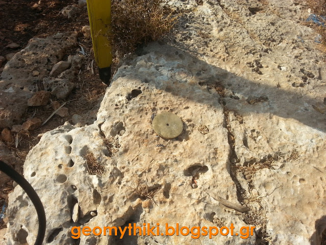 Σήμανση στο έδαφος, με ορειχάλκινη πλακέτα, ενός σημείου που θα χρησιμοποιηθεί ως αφετηρία μετρήσεων.