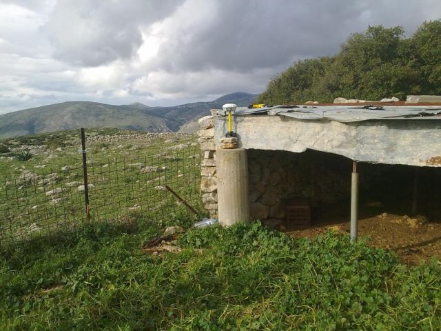 Βάθρο Γ.Υ.Σ. σε κορυφή λόφου όπου μετέπειτα χτίστηκε στάνη ακριβώς δίπλα του.