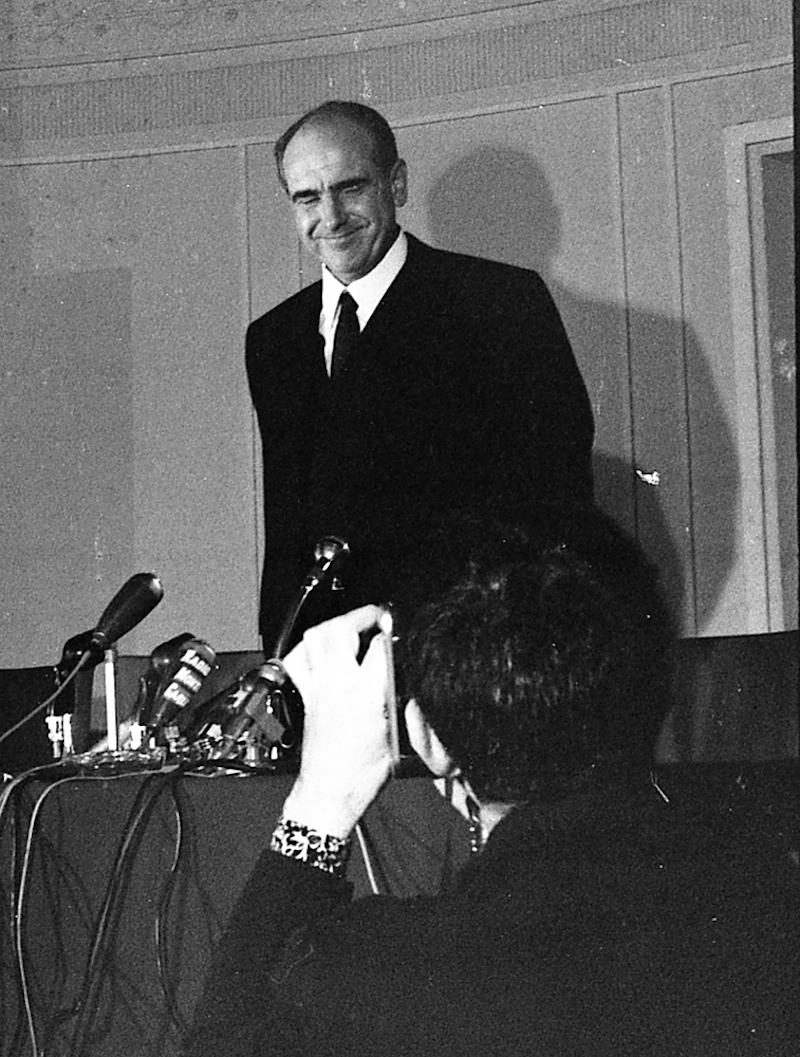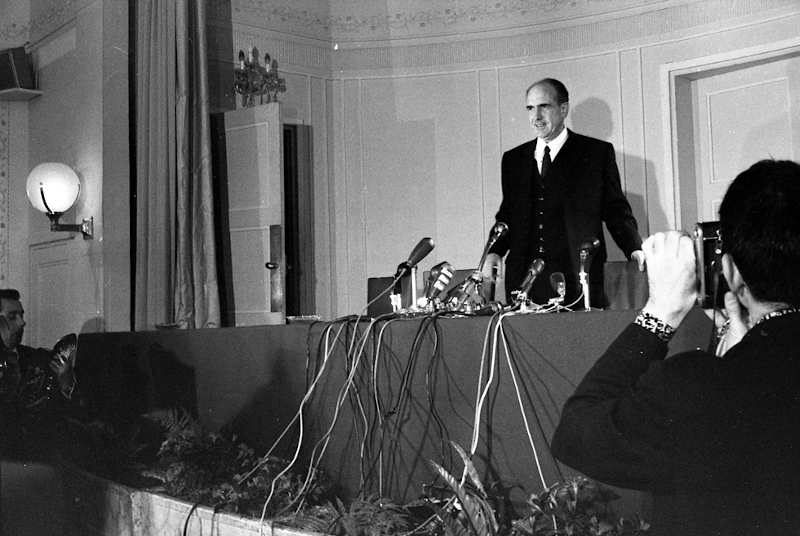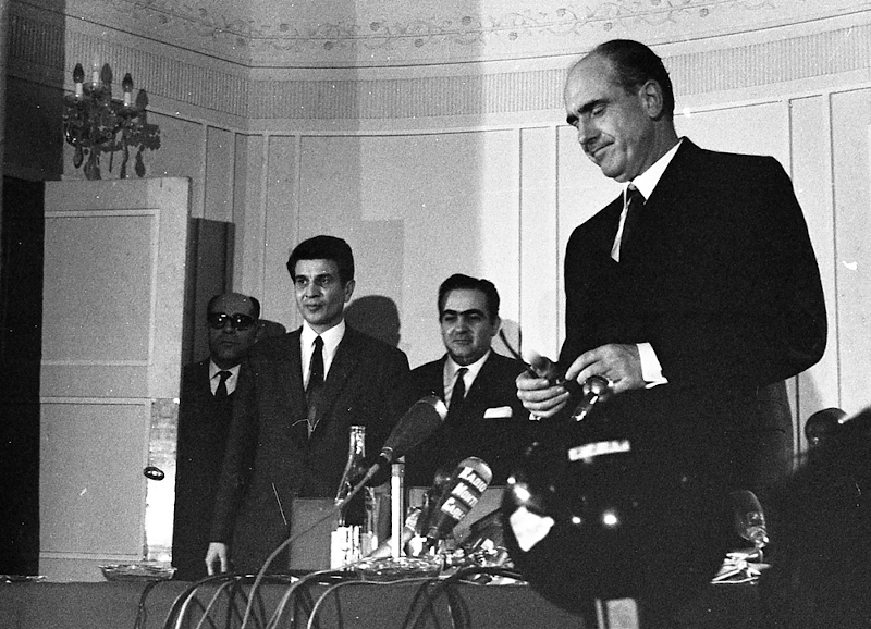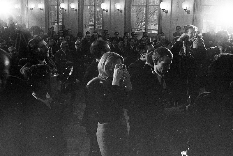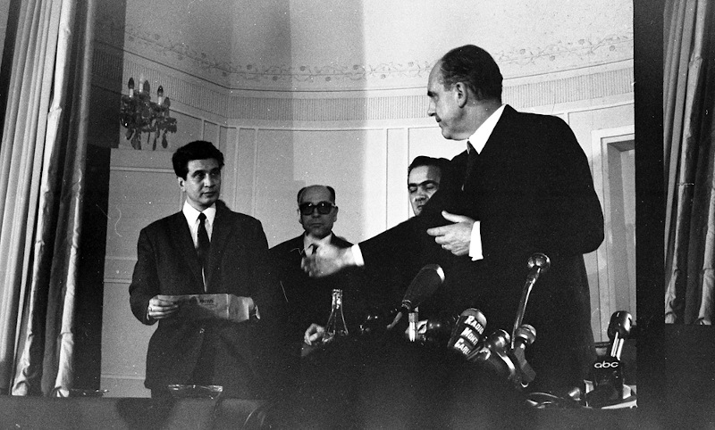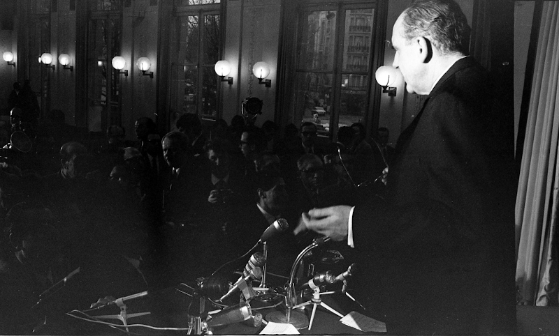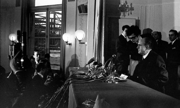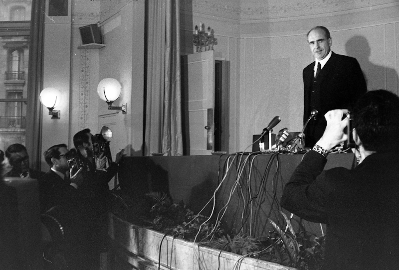 Την προηγούμενη μέρα, είχε δει για τελευταία φορά τον πατέρα του και αρχηγό της Ένωσης Κέντρου, οποίος τον εξουσιοδότησε να εκπροσωπήσει το κόμμα στο εξωτερικό. Αυτές είναι μοναδικές και μέχρι τώρα ανέκδοτες φωτογραφίες, τις οποίες παρουσιάζει το iefimerida.gr, από την άφιξή του στην πρωτεύουσα της Γαλλίας, όπου και έδωσε συνέντευξη Τύπου, καταγγέλλοντας τη χούντα των συνταγματαρχών και ανακοινώνοντας την απόφασή του να ακολουθήσει αντιστασιακό δρόμο.