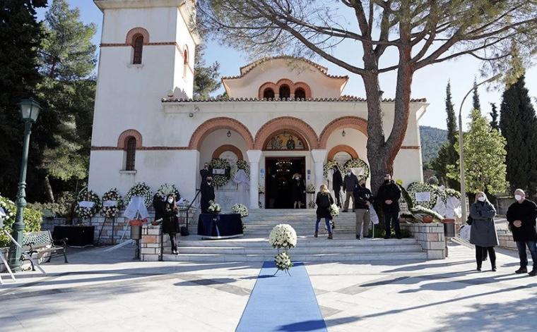 Συντετριμμένη η γυναίκα του και τα δύο του παιδιά έφτασαν στην εκκλησία κρατώντας στα χέρια τους τη φωτογραφία του αγαπημένου τους προσώπου.