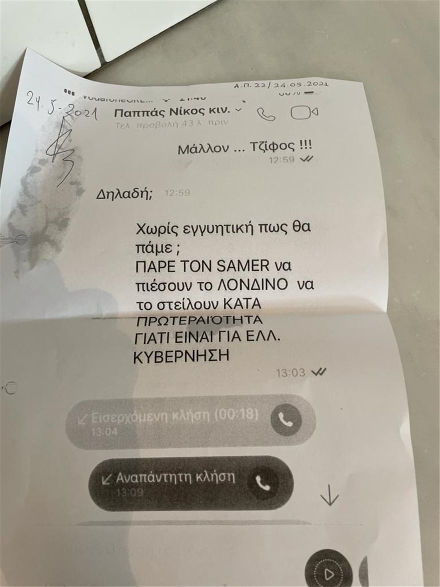 Στη συνέχεια οι δύο τους -όπως φαίνεται από το έγγραφο- είχαν τηλεφωνική επικοινωνία.