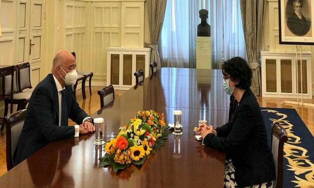 Εθιμοτυπική συνάντηση με την πρέσβη της Ιρλανδίας Iseult Fitzerald πραγματοποίησε στο υπουργείο Εξωτερικών νωρίτερα σήμερα ο υπουργός Εξωτερικών Νίκος Δένδιας.
