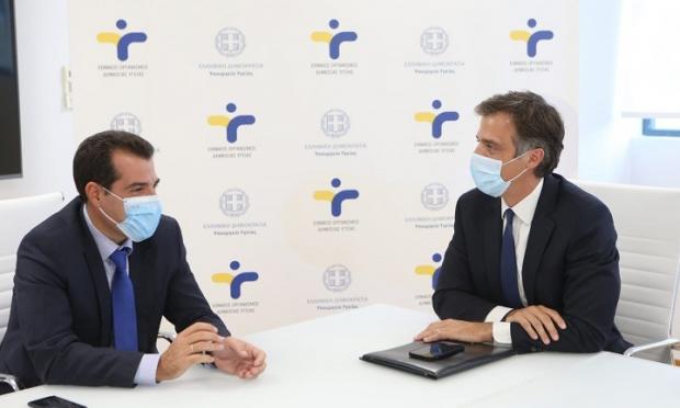 Ο Υπουργός Υγείας Θάνος Πλεύρης πραγματοποίησε σήμερα το μεσημέρι επισκέψεις στον Εθνικό Οργανισμό Παροχής Υπηρεσιών Υγείας (ΕΟΠΥΥ) και στον Εθνικό Οργανισμό Δημόσιας Υγείας (ΕΟΔΥ).