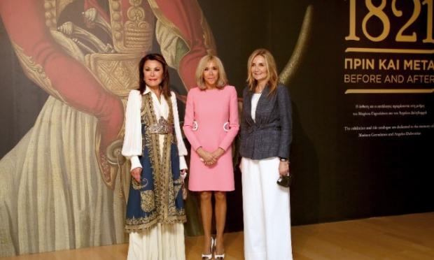 Η Πρώτη Κυρία της Γαλλίας, συνοδευόμενη από τη σύζυγο του Πρωθυπουργού παρακολούθησε την εκθεσιακή αφήγηση με τα εκατοντάδες έργα τέχνης και αρχειακά τεκμήρια που ξεδιπλώνει περισσότερα από εκατό χρόνια ιστορίας (1770-1870). Μέσα από τα ιστορικά αντικείμενα που εξασφαλίστηκαν απευθείας από τις οικογένειες των αγωνιστών του 1821 ή μέσω δανείων από μεγάλα μουσεία του εξωτερικού και ιδιωτικές συλλογές και από τη Γαλλία, η κα Μακρόν είδε να ζωντανεύουν σε τρεις ενότητες, η πορεία προς την εθνική Επανάσταση, η εξέλιξη του πολέμου της ανεξαρτησίας, η ολοκλήρωση του Αγώνα, η δημιουργία του νέου ελληνικού κράτους και οι πρώτες δεκαετίες της ανάπτυξης και λειτουργίας του.