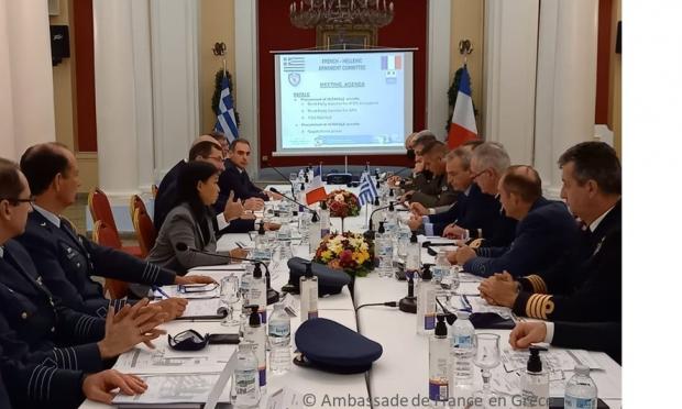 Η Επιτροπή Εξοπλισμών συνεδρίασε υπό την προεδρία των εκπροσώπων της Γενικής Διεύθυνσης Εξοπλισμών (DGA), των μηχανικών εξοπλισμού Thierry Carlier και Thomas Lorne, από τη γαλλική πλευρά, και του Αντιναυάρχου Αριστείδη Αλεξοπούλου, Γενικού Διευθυντή της ΓΔΑΕΕ, από ελληνικής πλευράς, όπως αναφέρεται σε ανακοίνωση στην ιστοσελίδα της Γαλλικής Πρεσβείας στην Ελλάδα.