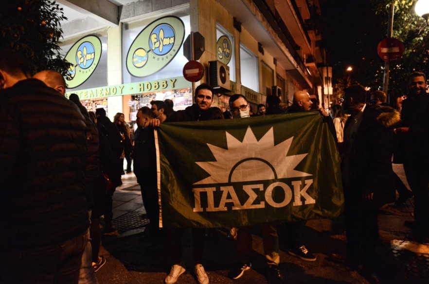 Πλήθος κόσμου συγκεντρώθηκε απόψε στην οδό Ιπποκράτους για να συγχαρεί τον νικητή των εσωκομματικών εκλογών του ΚΙΝΑΛ Νίκο Ανδρουλάκη.