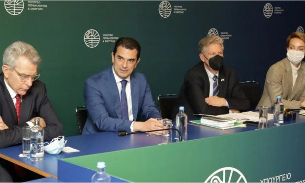 Ο Υπουργός Περιβάλλοντος και Ενέργειας, Κώστας Σκρέκας, συναντήθηκε το απόγευμα της Τρίτης, με τα μέλη της Επιτροπής Ενέργειας και Εμπορίου της Βουλής των Αντιπροσώπων των ΗΠΑ, Frank Pallone Jr, Fred Upton, Yvette D. Clarke, Jerry McNerney, Robert E. Latta, Lisa Blunt Rochester και Lizzie Fletcher και τον Πρέσβη των ΗΠΑ στην Ελλάδα, Τζέφρι Πάιατ. Στη συνάντηση συμμετείχε και η Γενική Γραμματέας Ενέργειας και Ορυκτών Πρώτων Υλών, Αλεξάνδρας Σδούκου.