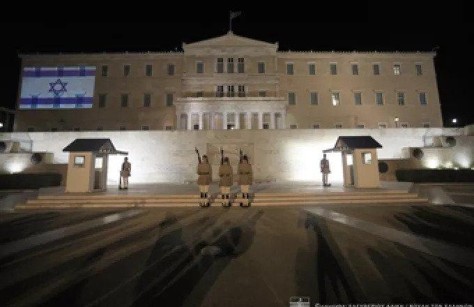 Τη στήριξή της στο λαό του Ισραήλ για τις απάνθρωπες τρομοκρατικές επιθέσεις που υπέστη από τη Χαμάς το Σάββατο έδειξε έμπρακτα το βράδυ της Τετάρτης η Βουλή των Ελλήνων. Η πρόσοψη της Βουλής φωταγωγήθηκε με τη σημαία του Ισραήλ.
