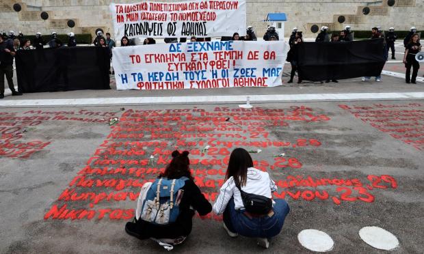 Τα ονόματα των θυμάτων είχαν γράψει χθες φοιτητές και φοιτήτριες, αλλά σήμερα Πέμτη (29/2) ο Φρούραρχος της Βουλής φέρεται να έδωσε την εντολή να σβηστούν.