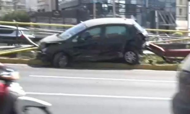 Τα δύο αυτοκίνητα συγκρούστηκαν με σφοδρότητα με το προπορευόμενο να καταλήγει πάνω στα κιγκλιδώματα. Ακούστηκε ένας εκκωφαντικός θόρυβος ενώ βγήκαν καπνοί και οι αερόσακοι άνοιξαν. Στη μέση του δρόμου πετάχτηκαν εξαρτήματα από τα δύο αμάξια που έγιναν σμπαράλια.