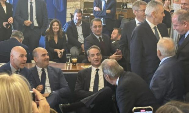 Πηγαδάκι Μητσοτάκη με βουλευτές στο εντευκτήριο της Βουλής