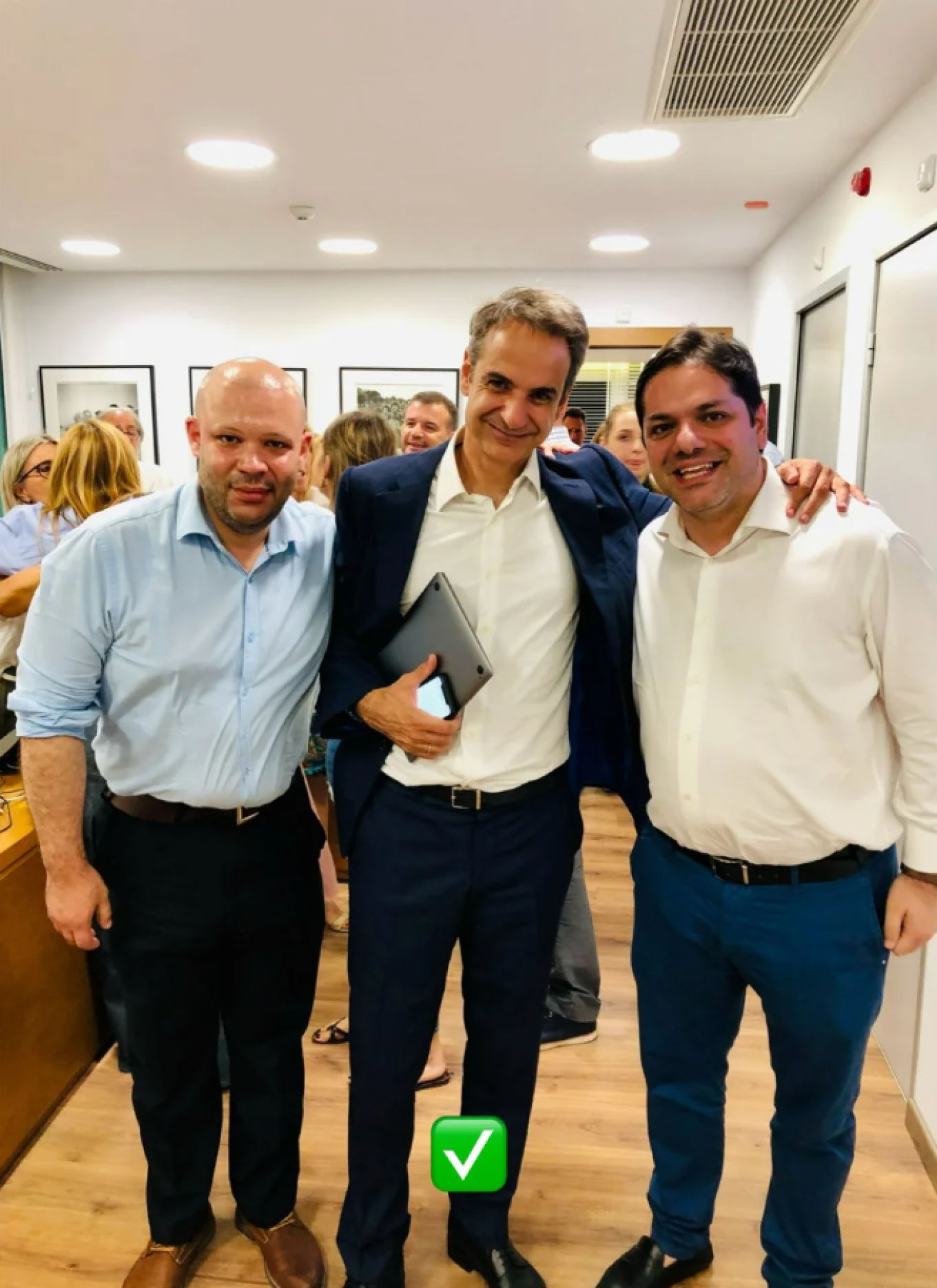Επειδή, όμως, το ψέμα (πρέπει να) έχει «κοντά ποδάρια», ανατρέχοντας στο αρχείο μου, βρήκα την πραγματική φωτογραφία: Στη φωτογραφία αυτή -που εύκολα διαπιστώνεται η γνησιότητά της- είναι ο Κυριάκος Μητσοτάκης με εμένα και τον Δημήτρη Παπαγγελόπουλο στο γραφείο του, στα κεντρικά της ΝΔ, το βράδυ της 7ης Ιουλίου 2019, όταν η Νέα Δημοκρατία κέρδισε τις εκλογές. Να το θυμόμαστε πάντα, ιδίως την σημερινή ημέρα: Η έγκυρη ενημέρωση δεν είναι εύηχο σύνθημα. Είναι θεμέλιο και προϋπόθεση Δημοκρατίας.»
