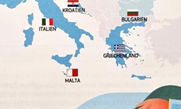 Συγκεκριμένα, στην πιο πρόσφατη έκδοση του ενημερωτικού εντύπου «Ανακαλύπτοντας την Ευρώπη» (Δεκέμβριος 2024), το οποίο κυκλοφορεί σε δεκάδες χιλιάδες αντίτυπα παγκοσμίως, εντοπίζεται μια κραυγαλέα παραποίηση: όλα τα νησιά του Ανατολικού Αιγαίου και τα Δωδεκάνησα απεικονίζονται με τον χρωματισμό της Τουρκίας, αντί να φέρουν το εθνικό χρώμα της Ελλάδας.