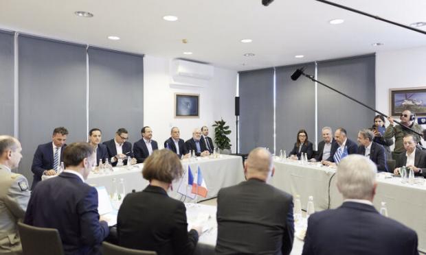 Οι πρόσφατες εξελίξεις στο Ιράν και γενικότερα στη Μέση Ανατολή βρέθηκαν στο επίκεντρο των συνομιλιών που πραγματοποίησαν ο Γάλλος πρόεδρος Εμανουέλ Μακρόν με τον Κυριάκο Μητσοτάκη και τον Νίκο Χριστοδουλίδη στη στρατιωτική βάση «Ανδρέας Παπανδρέου» στην Πάφο.