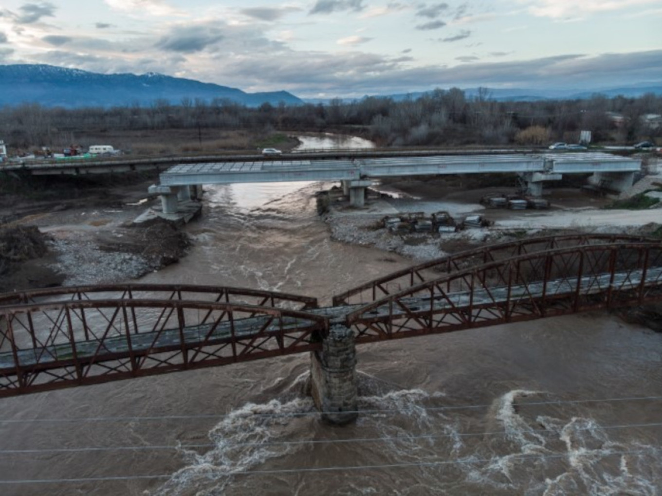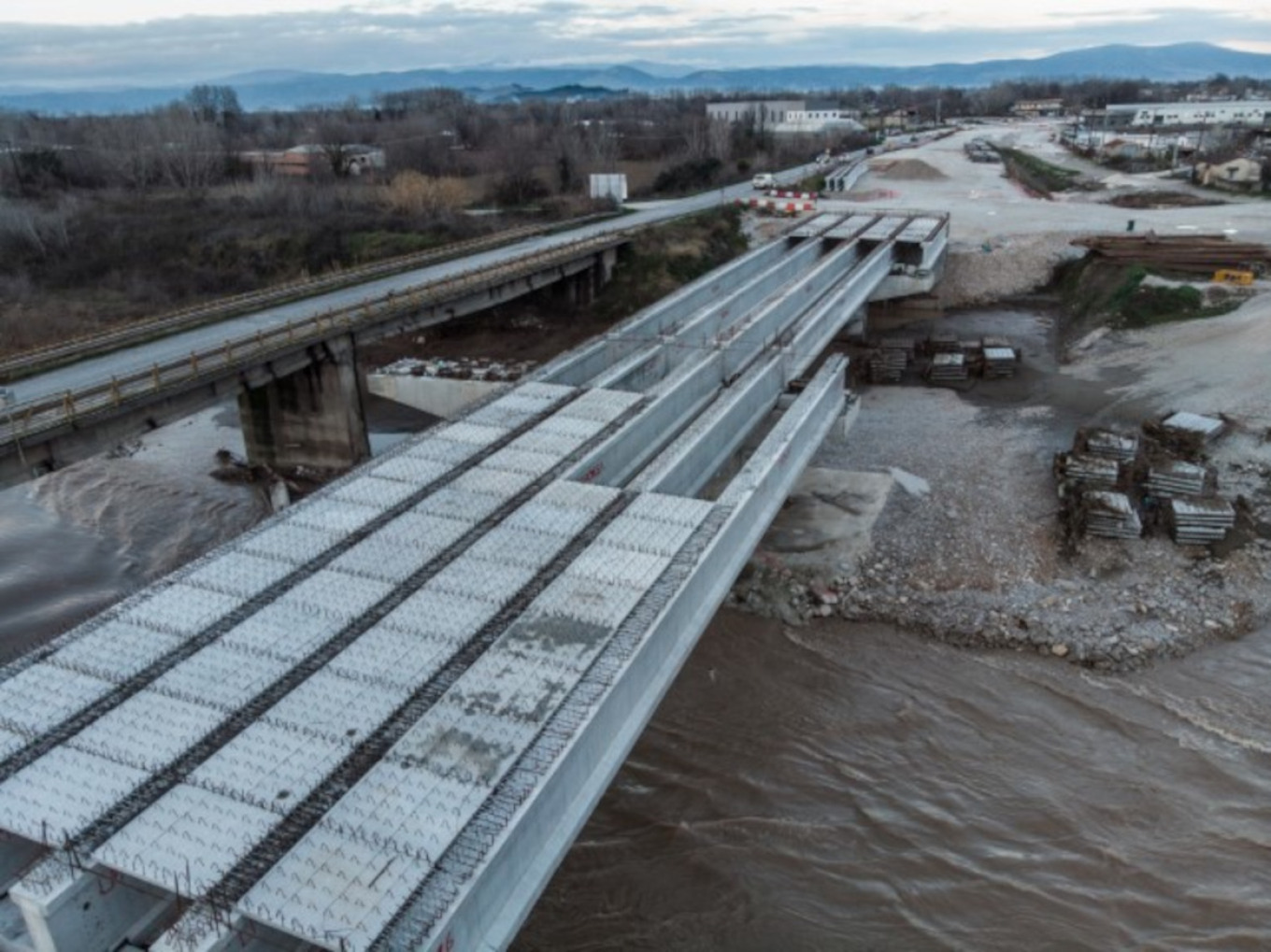 Εντυπωσιακές είναι οι εικόνες από τα έργα που είναι σε εξέλιξη για την κατασκευής της νέας γέφυρας Καραβόπορου στα Τρίκαλα, με τα εργοτάξια να έχουν στηθεί και στις δύο όχθες του ποταμού και τις εργασίες να προχωρούν κανονικά.