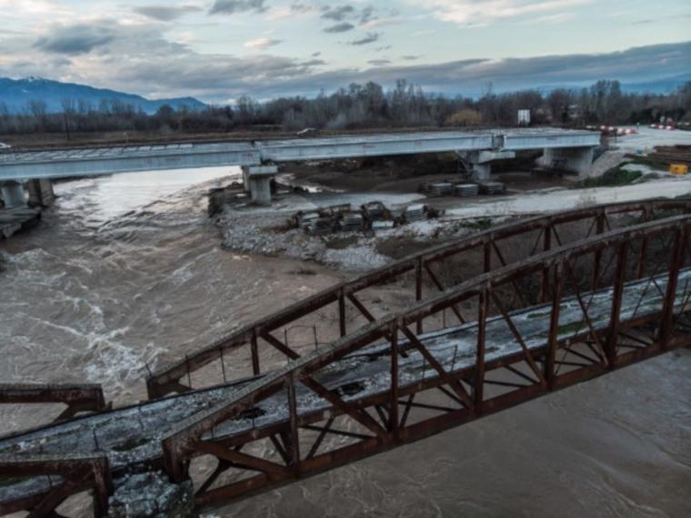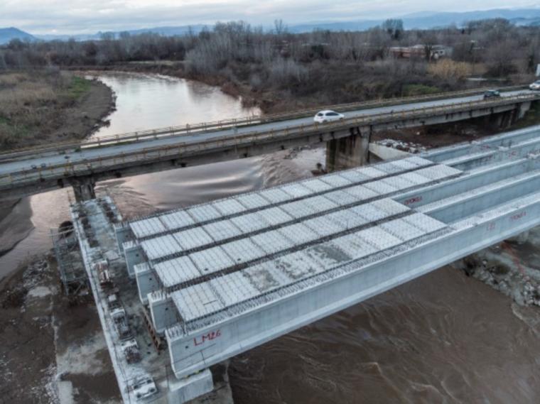 την κατασκευή τεχνικών έργων (γεφυρών) διέλευσης του Πηνειού μήκους 143,10m για την αρτηρία και τον βόρειο παράπλευρο.